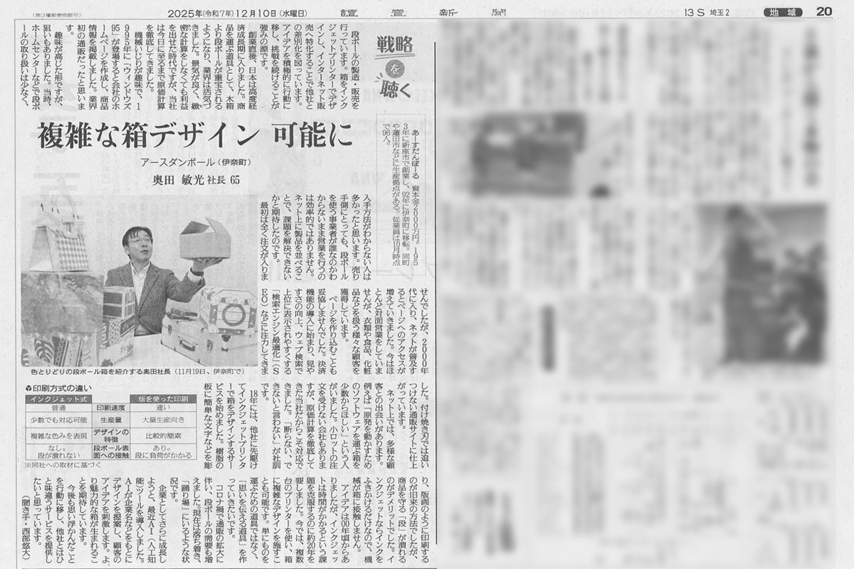 2025年12月10日(水)発行の読売新聞(埼玉版)「戦略を聴く」にアースダンボールが掲載されました!